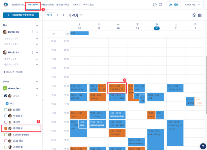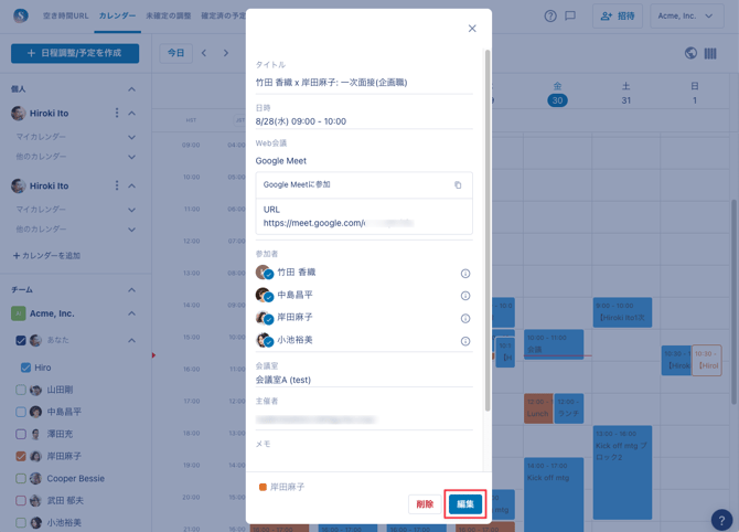 2. 予定の主催者になっている人のカレンダーから該当する予定を選択します