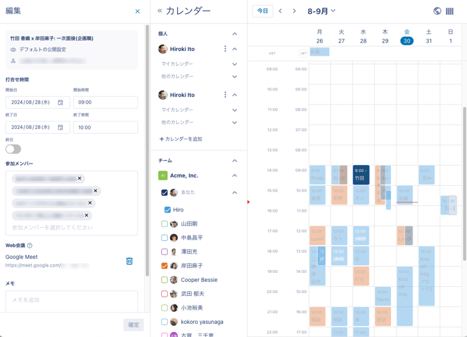 予定の日時を変更できます。カレンダー上から日時を変更するもしくは、入力エリアから日時変更することもできます。