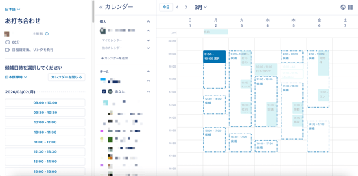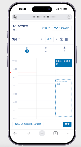 Spirユーザーの場合(自身のカレンダーと候補を重ねて表示可能)