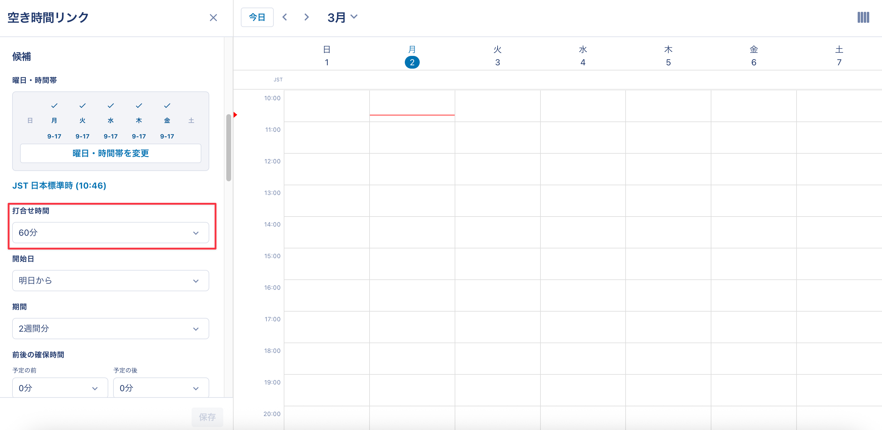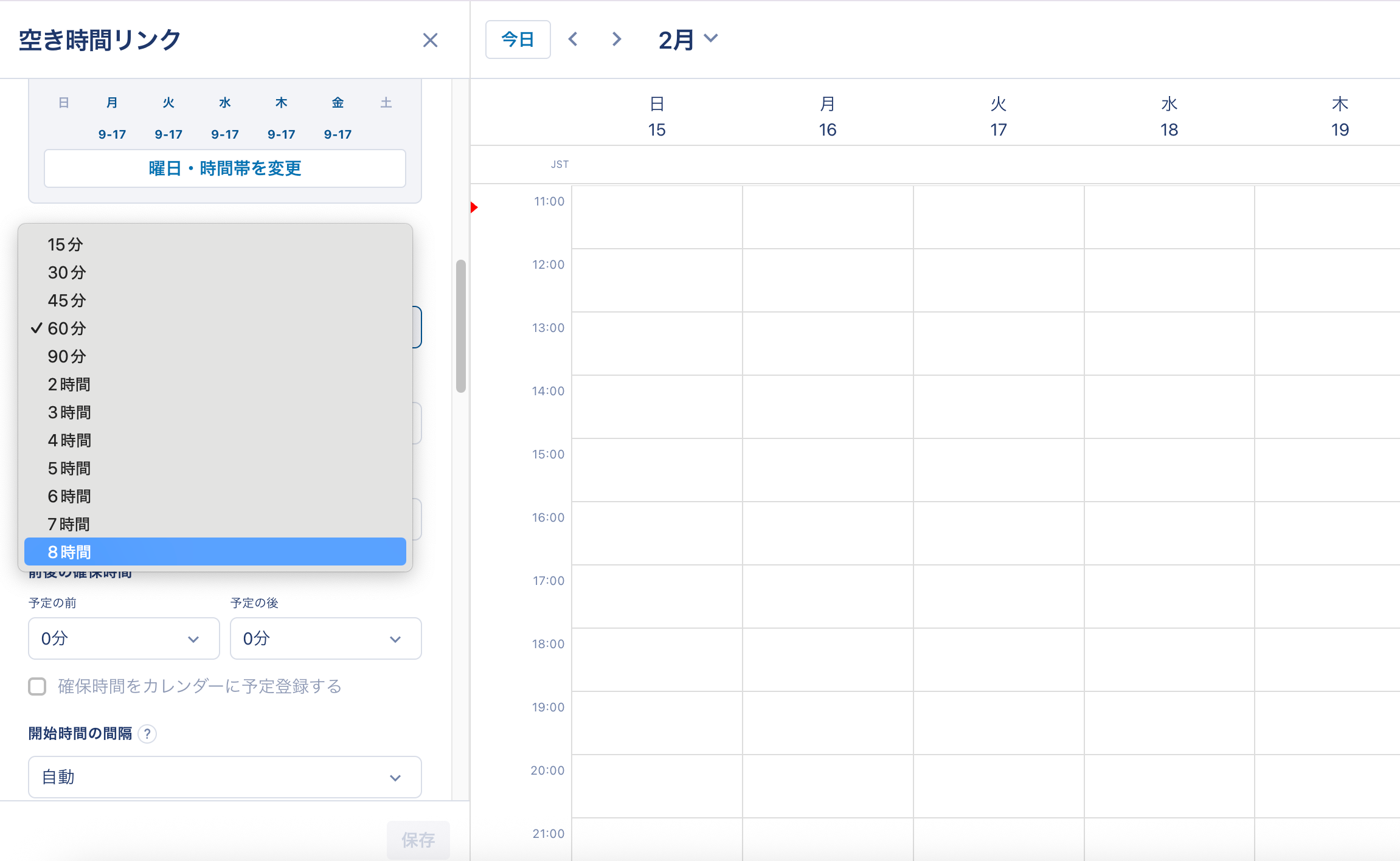 <設定画面:空き時間リンク編集画面>