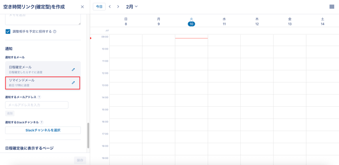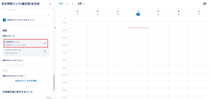 この機能は、日程確定時およびリマインドのメール通知において、任意のメッセージの追加や送信日時の変更を設定することができます。