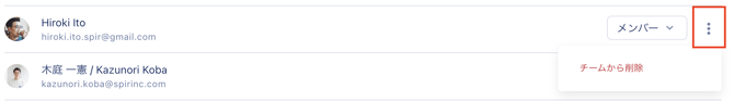 メンバーを削除する方法(この操作はチームの管理者のみが可能です)