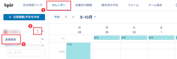 連携しているカレンダーが一つしかない場合、Spirを一度ログアウトし、再度ログインしていただくことで再連携される仕組みになっています。