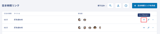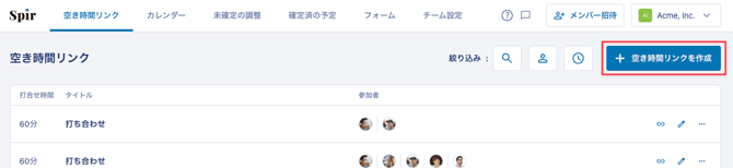 - 「空き時間リンクを作成」ボタンをクリックします。
