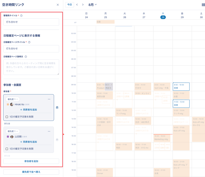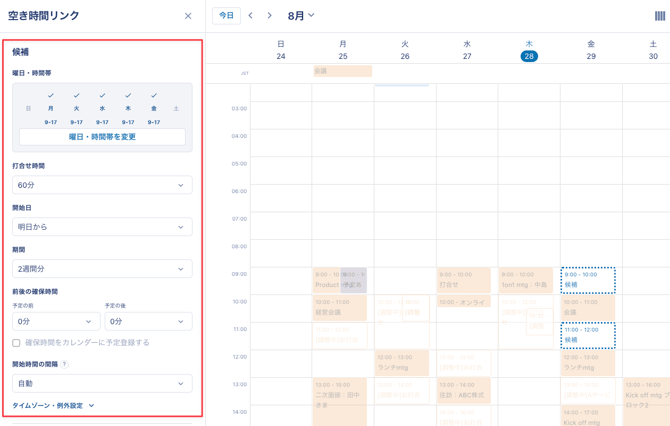 ※ プリセットされている空き時間URLを「候補の確認・編集」から条件変更することもできます。