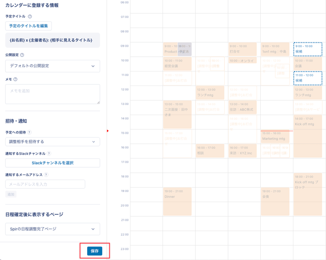- 「候補から除外する祝日」「候補から除外する日時」の項目で、祝日を候補に追加もしくは特定の日時を除外(例:日本の祝日を除外しない設定)