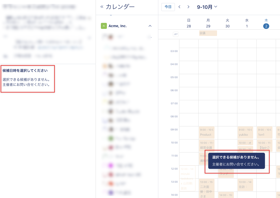 このエラーは空き時間リンクの作成者(予定の主催者)にカレンダーの再連携を行なっていただくほか解決方法がなく、お手数ですがお客様ご自身で空き時間リンクの作成者(予定の主催者)にご連絡いただきますようお願いいたします。