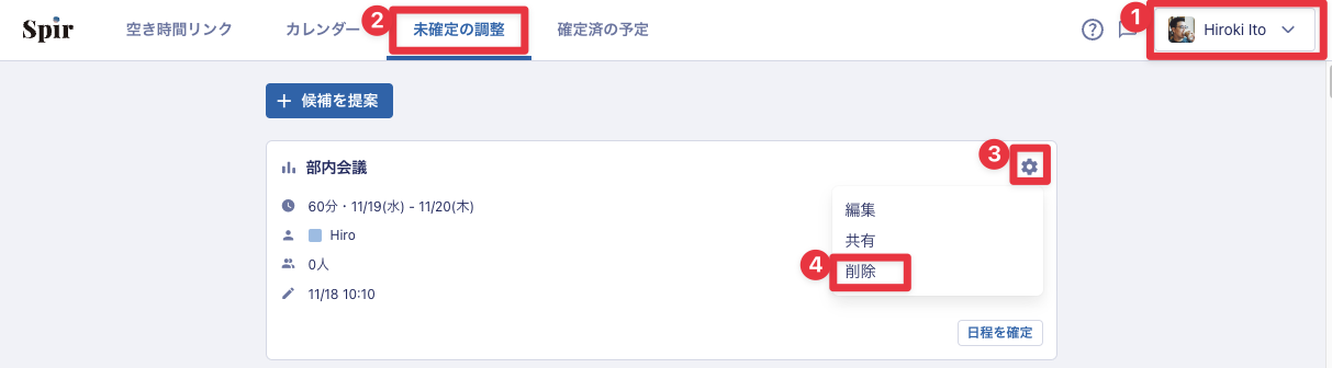 参加者に投票をしていただいた結果、日程に折り合いがつかない場合など、投票型の調整を削除したい場合の操作方法をご案内します。