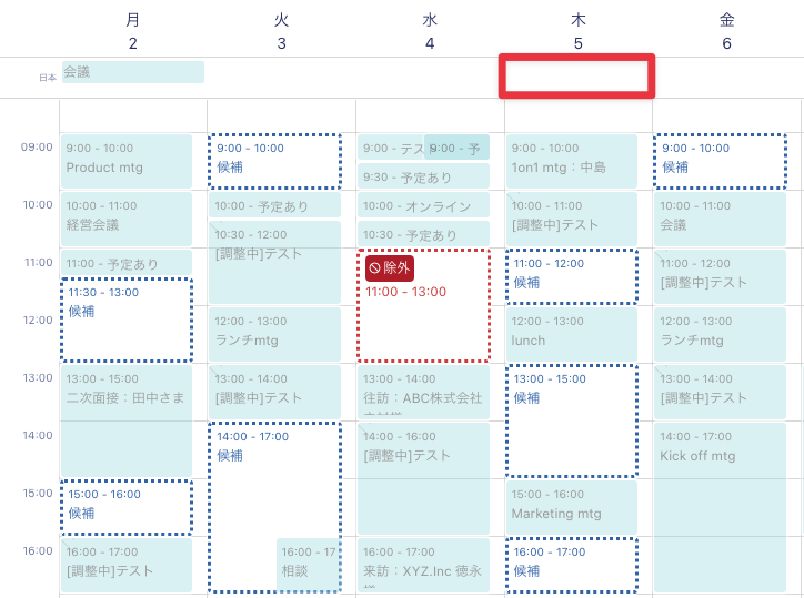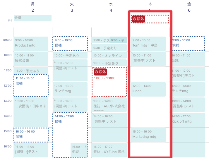 - 複数の空き時間リンク、全ての候補を除外したい場合